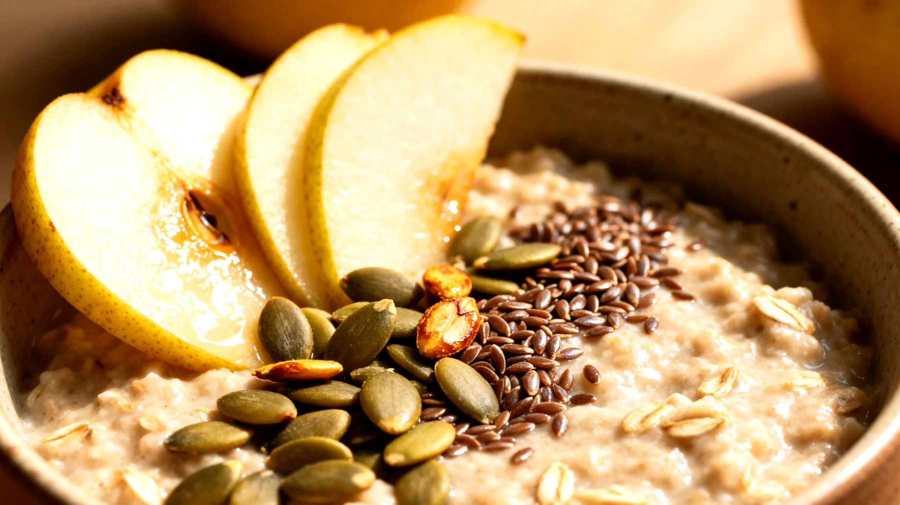Wenn die Tage kürzer werden und der Körper nach wärmender, nachhaltiger Energie verlangt, ist eine Mahlzeit gefragt, die mehr leistet als nur kurzfristig zu sättigen. Haferbrei mit Kürbiskernen, Leinsamen und Birne vereint genau diese Eigenschaften: Er liefert langanhaltende Energie, stabilisiert den Blutzuckerspiegel und versorgt den Organismus mit wertvollen Nährstoffen – perfekt für den Übergang in die kühleren Monate.