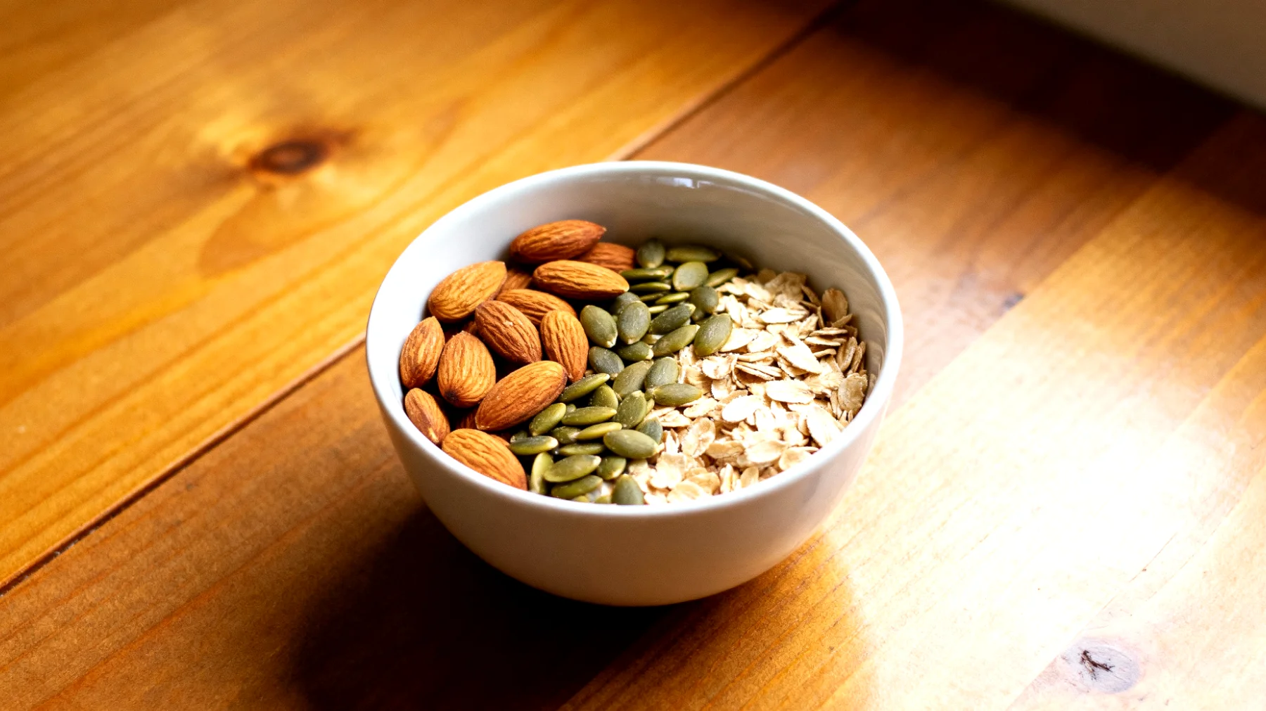 Die Zubereitung ist denkbar einfach: Rohe Mandeln, rohe Kürbiskerne und kernige Haferflocken im Verhältnis mischen. Wer möchte, kann die Mandeln vorab in Wasser einweichen, sollte sich aber bewusst sein, dass die verdauungsfördernde Wirkung wissenschaftlich nicht eindeutig belegt ist. Die Mischung hält sich in einem luftdichten Behälter mehrere Wochen. Wer mag, kann etwas Zimt hinzufügen – auch dieser wirkt blutzuckerstabilisierend und verleiht dem Snack eine angenehme Note.