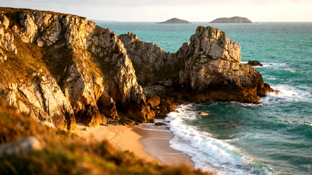 Das absolute Highlight der Insel ist zweifelsohne die Côte Sauvage, die wilde Küste im Nordwesten. Hier türmen sich bis zu 60 Meter hohe Klippen auf, die im Januar besonders eindrucksvoll sind, wenn der Atlantik seine volle Kraft entfaltet. Der Küstenweg, der sich über etwa zehn Kilometer erstreckt, bietet spektakuläre Ausblicke auf tosende Wellen, natürliche Felsformationen und versteckte Buchten. Mit euren Freunden könnt ihr hier stundenlang wandern, ohne auf andere Menschen zu treffen. Packt warme Kleidung und eine Thermoskanne mit heißem Tee ein – die salzige Gischt und der starke Wind werden euch durchpusten, aber genau das macht den Reiz aus.